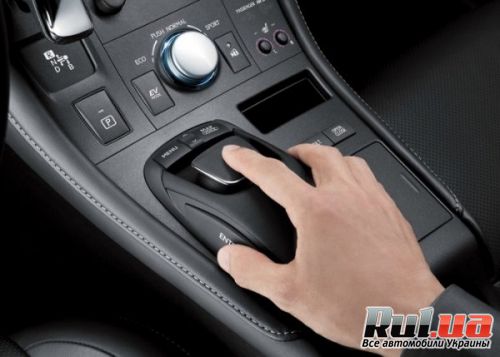 В Lexus CT 200h есть режим EV, когда автомобиль двигается только на электрической тяге, но при этом скорость не превышает 45 км/ч при запасе хода всего в 2 км. Трансмиссия автомобиля бесступенчатая с электронным управлением. Под багажным отделением расположены Ni-MH батареи, примерно такие использованы в Toyota Prius. Место расположения призвано улучшить развесовку по осям автомобиля.