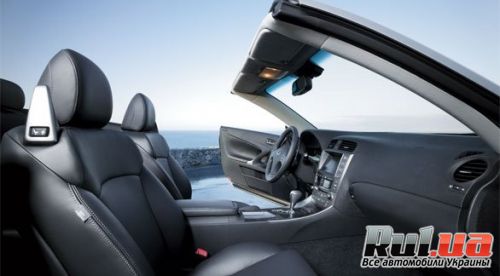 Lexus IS 250C может похвастаться превосходной отделкой салона: высококачественные материалы и привлекательный спортивный дизайн. Все детали идеально подогнаны друг к другу, все поверхности приятны на ощупь. К тому же, автомобили Lexus славятся одним из лучших электронных интерфейсов: все элементы управления удобны в обращении и расположены очень рационально. Система вентиляции автоматически изменяет объем и распределение воздушных потоков в зависимости от того, поднят или опущен верх. Точно так же устроена и аудиосистема: уровень громкости и настройки эквалайзера регулируются автоматически в зависимости от уровня шума в кабине.