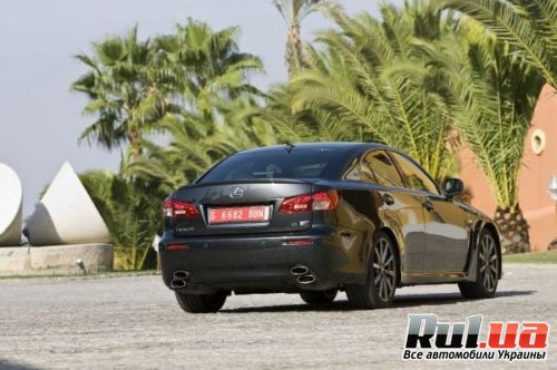Тормоза Lexus IS F изготовлены по спецификациям японских инженеров, поэтому на алюминиевых суппортах серийной машины впервые красуется логотип Lexus. Еще больше агрессии добавляют вздыбленный капот с красивым изломом и аэродинамическая юбка вдоль порогов, переходящая в глубочайший разрез позади передних колесных арок. Соперничать с ним могут разве что сдвоенные по вертикали патрубки выхлопа. Завершает картину довольно лаконичный спойлер на крышке багажника.